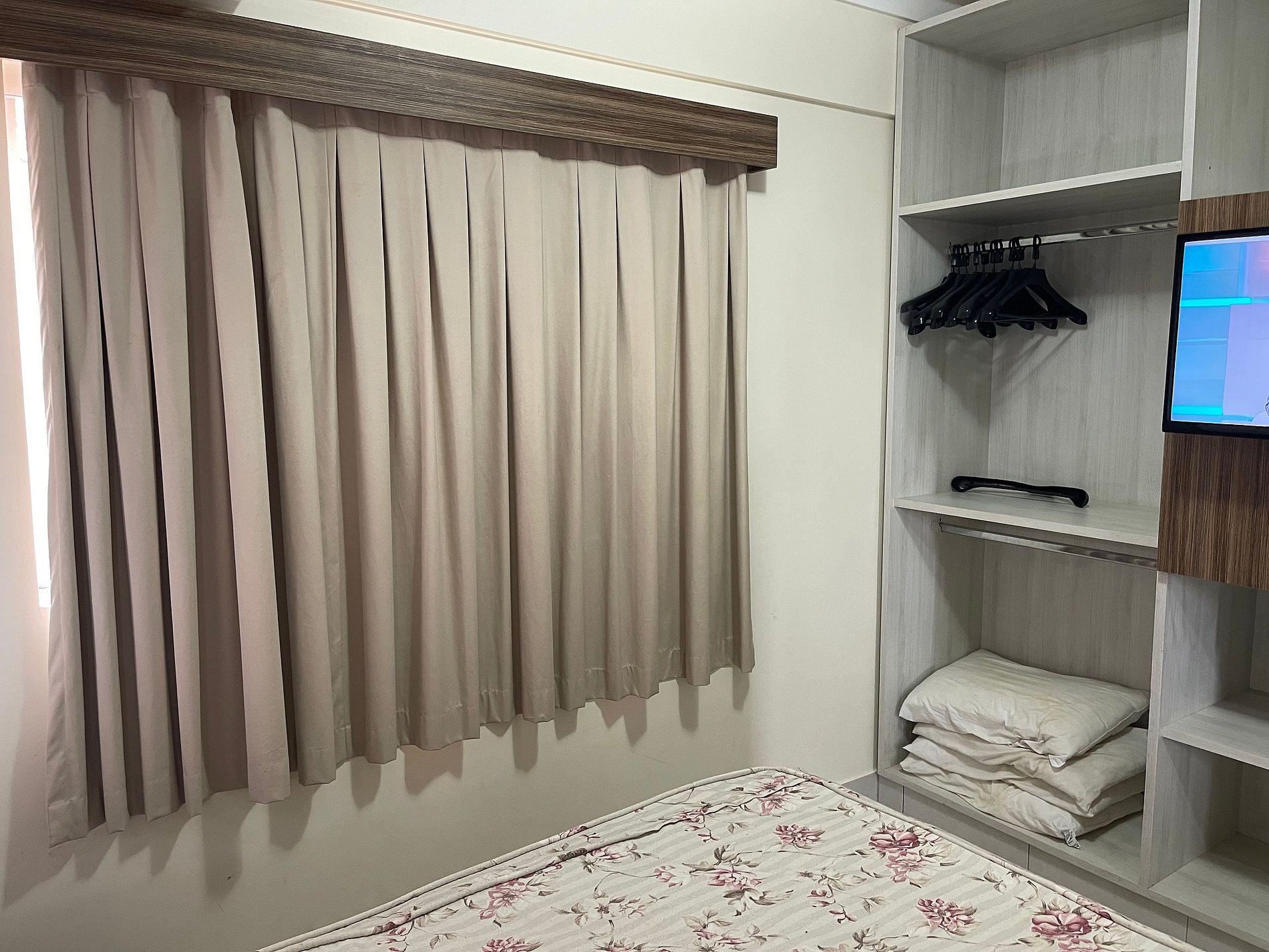 Apartamento aconchegante de 1 quarto contendo, suíte de casal com ar condicionado, TV e guarda roupa, 1 colchão extra de solteiro.