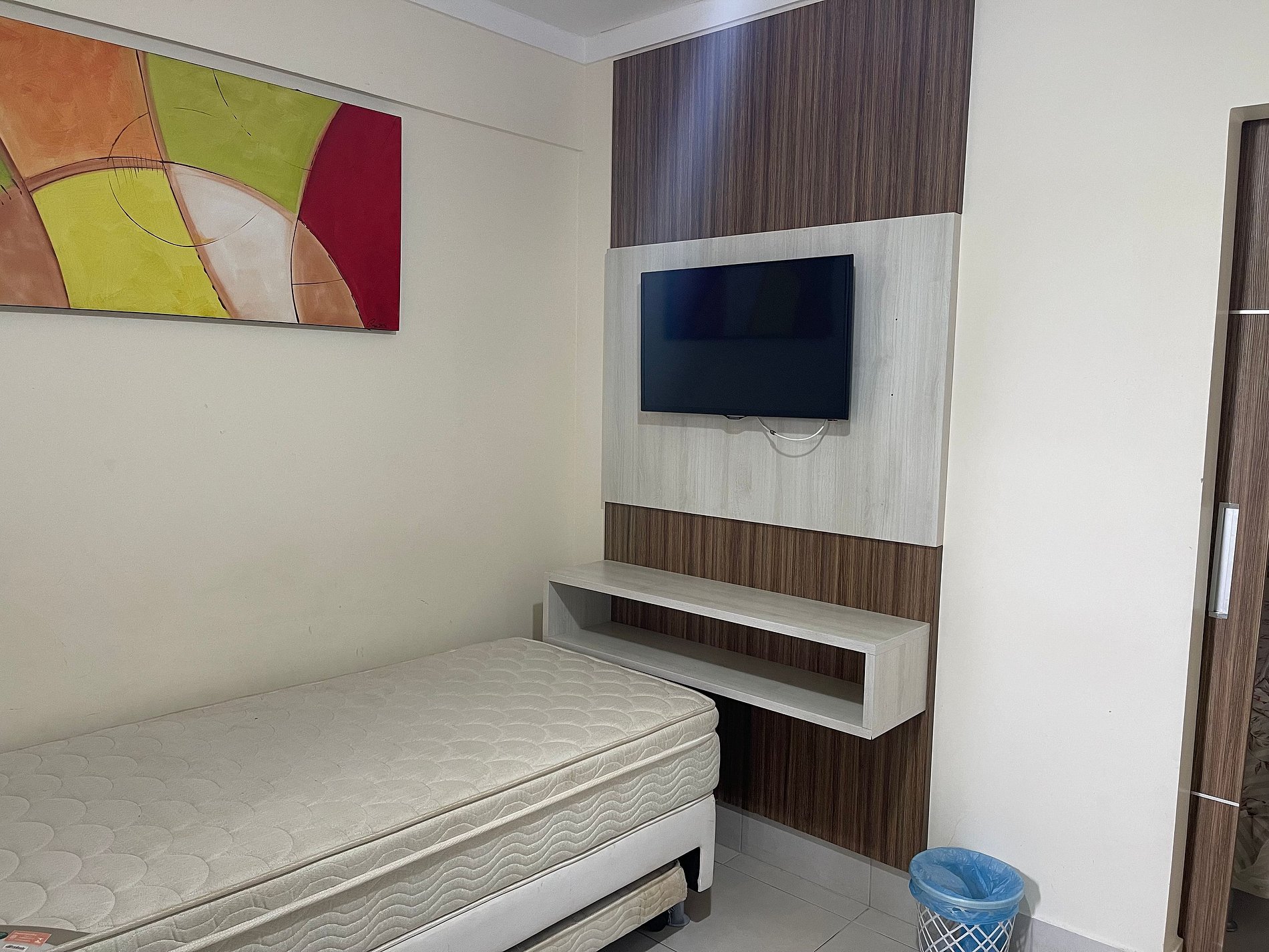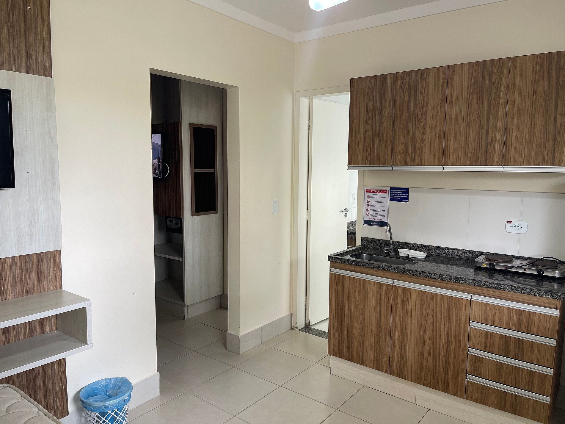 Apartamento aconchegante de 1 quarto contendo, suíte de casal com ar condicionado, TV e guarda roupa, 1 colchão extra de solteiro.