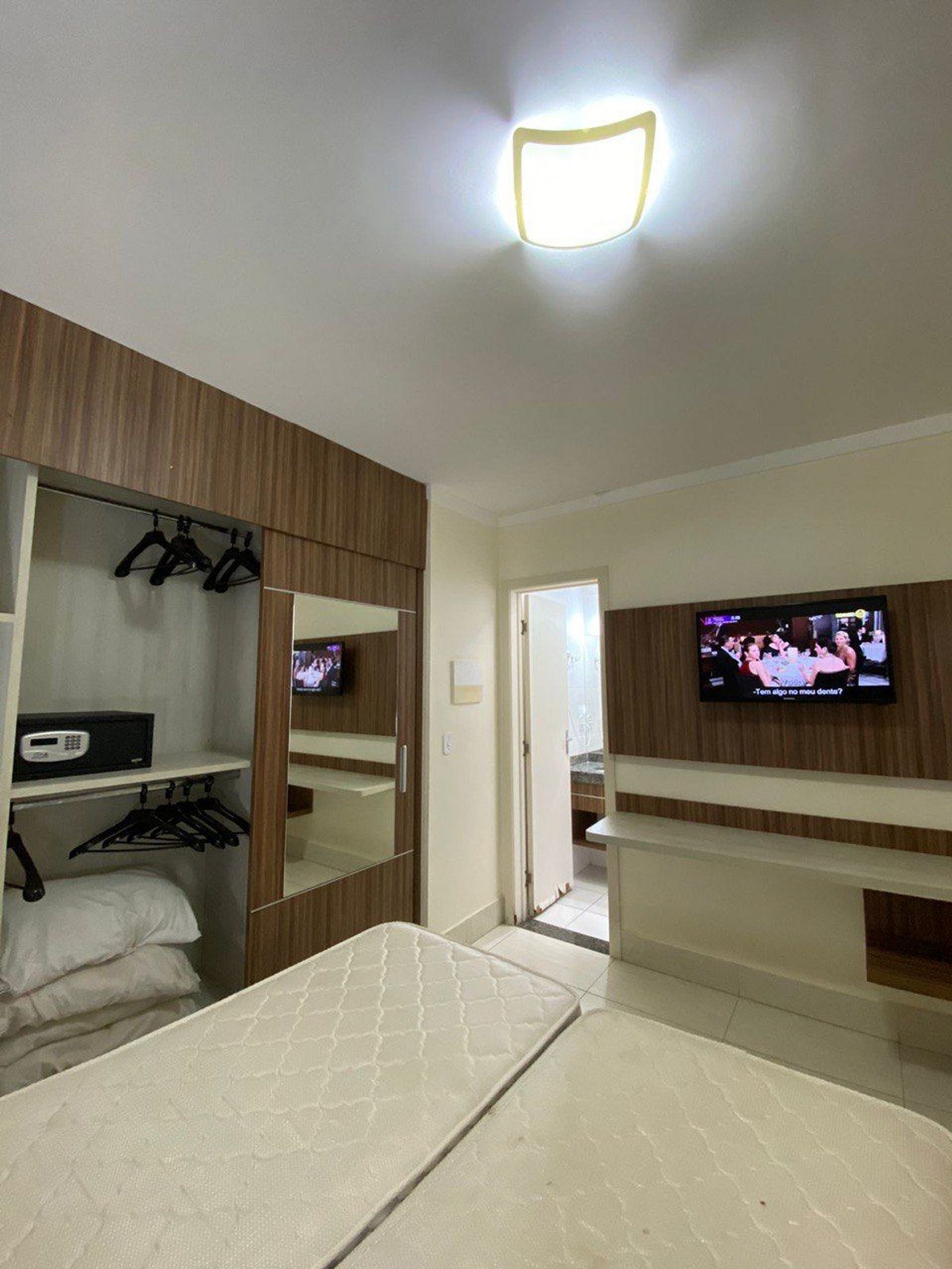 Apartamento aconchegante de 1 quarto contendo, suíte de casal com ar condicionado, TV e guarda roupa, 1 colchão extra de solteiro.