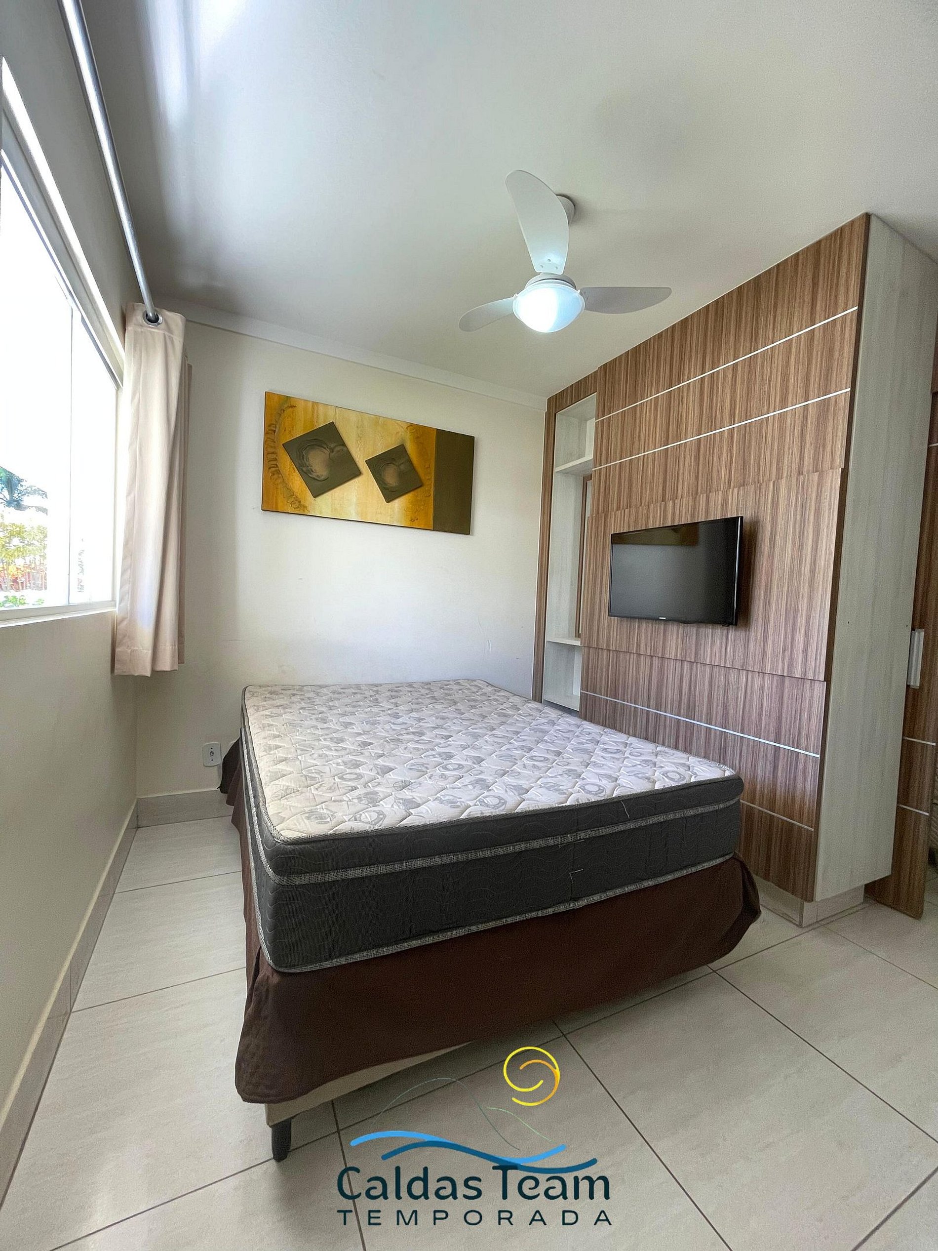 Apartamento aconchegante de 1 quarto contendo, suíte de casal com ar condicionado, TV e guarda roupa, 1 colchão extra de solteiro.