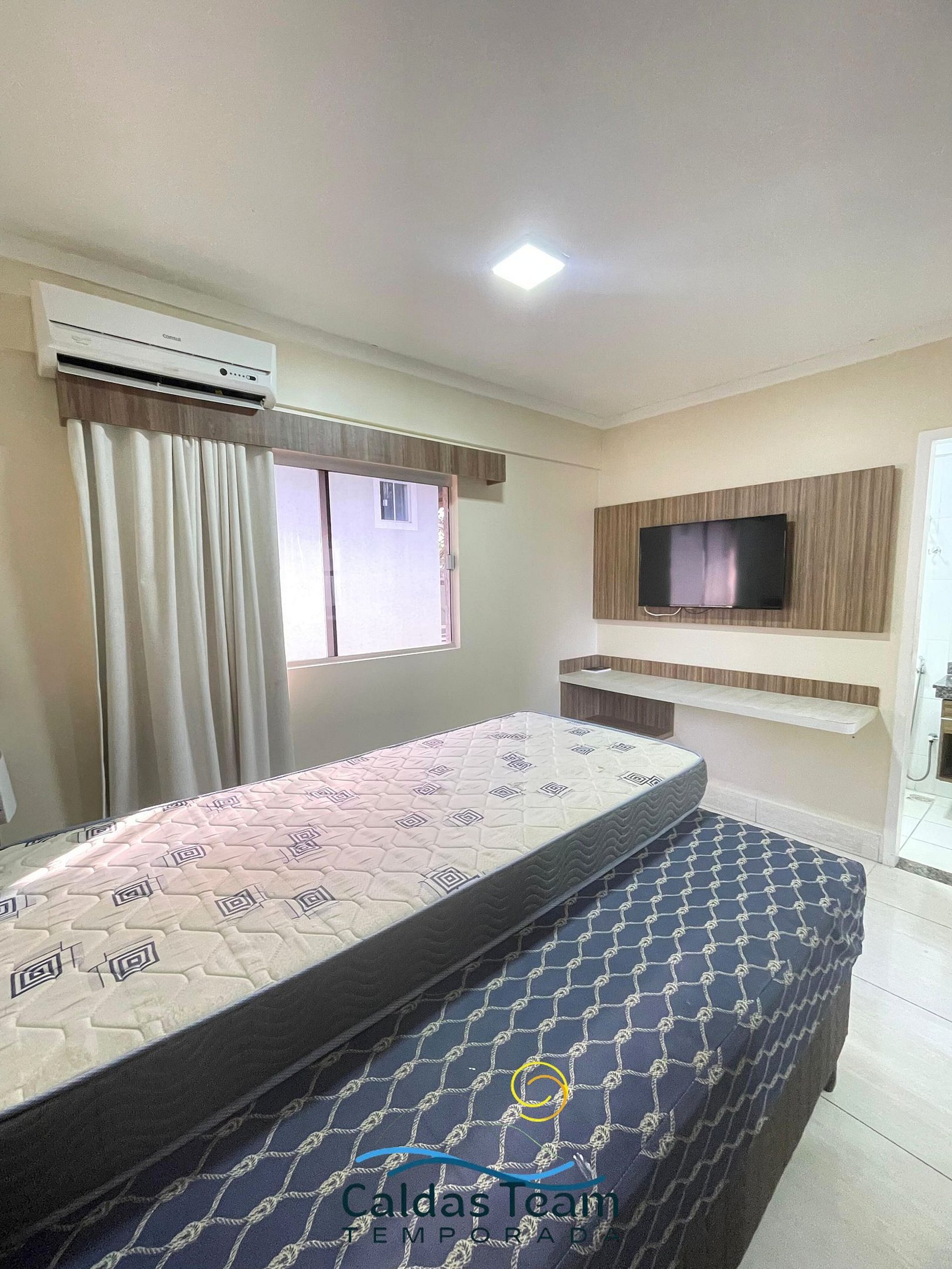 Apartamento aconchegante de 1 quarto contendo, suíte de casal com ar condicionado, TV e guarda roupa, 1 colchão extra de solteiro.