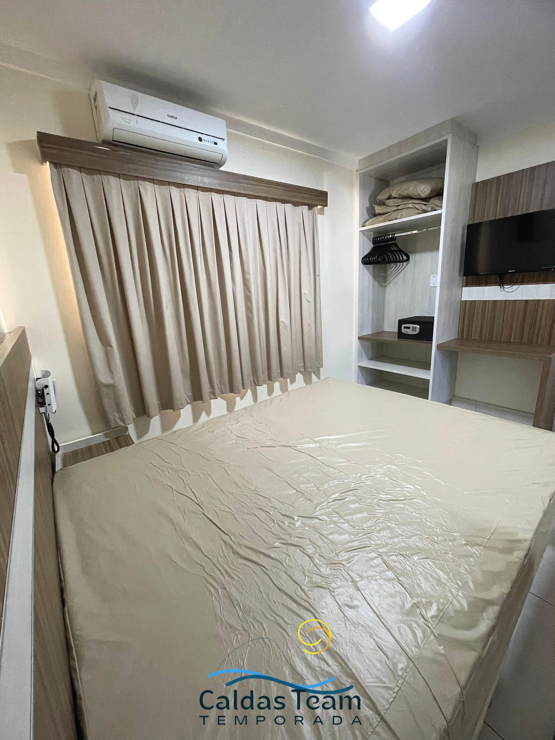 Apartamento aconchegante de 1 quarto contendo, suíte de casal com ar condicionado, TV e guarda roupa, 1 colchão extra de solteiro.