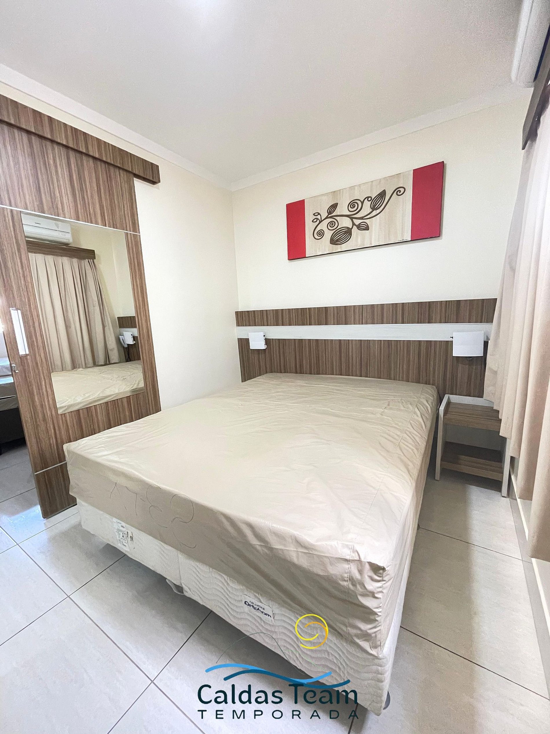 Apartamento aconchegante de 1 quarto contendo, suíte de casal com ar condicionado, TV e guarda roupa, 1 colchão extra de solteiro.