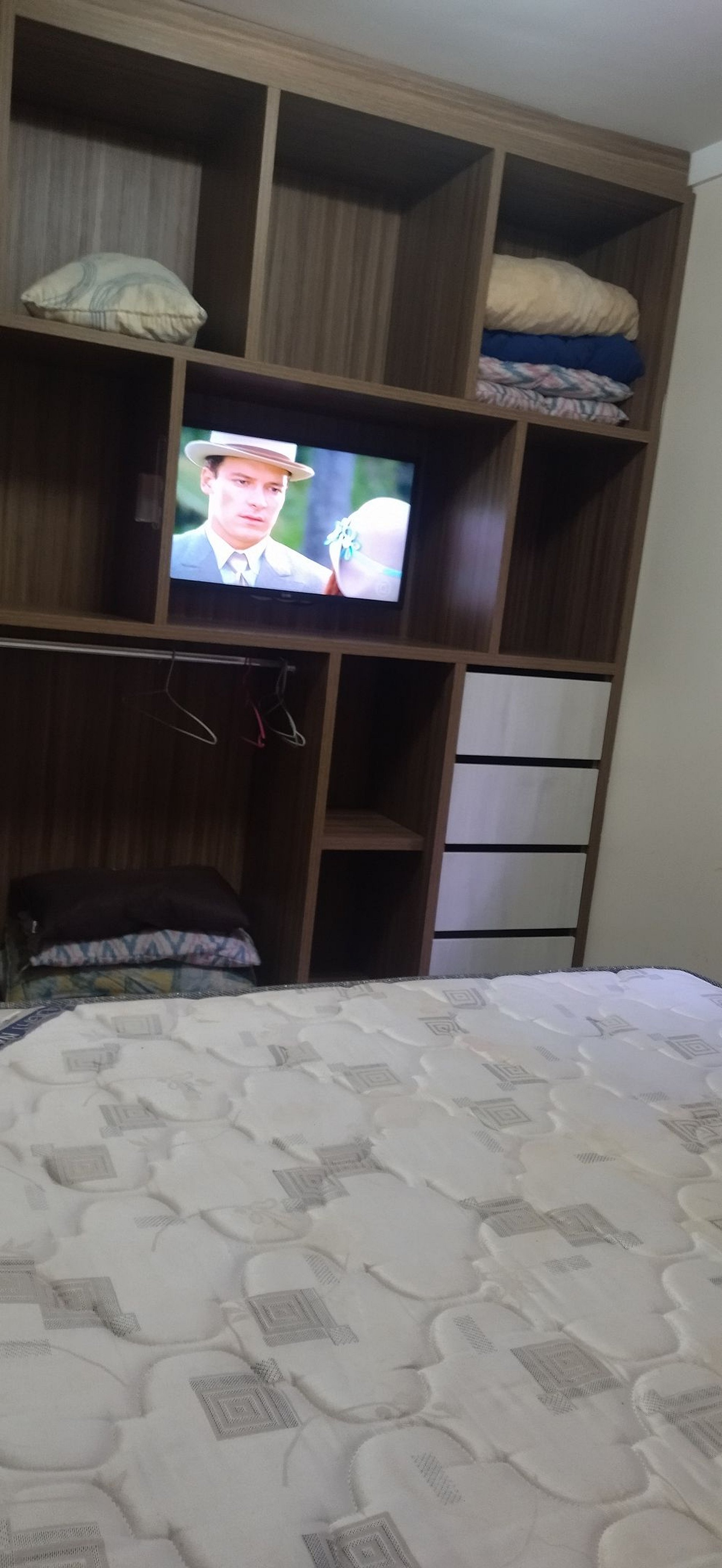 Apartamento aconchegante de 1 quarto contendo, suíte de casal com ar condicionado, TV e guarda roupa, 1 colchão extra de solteiro.