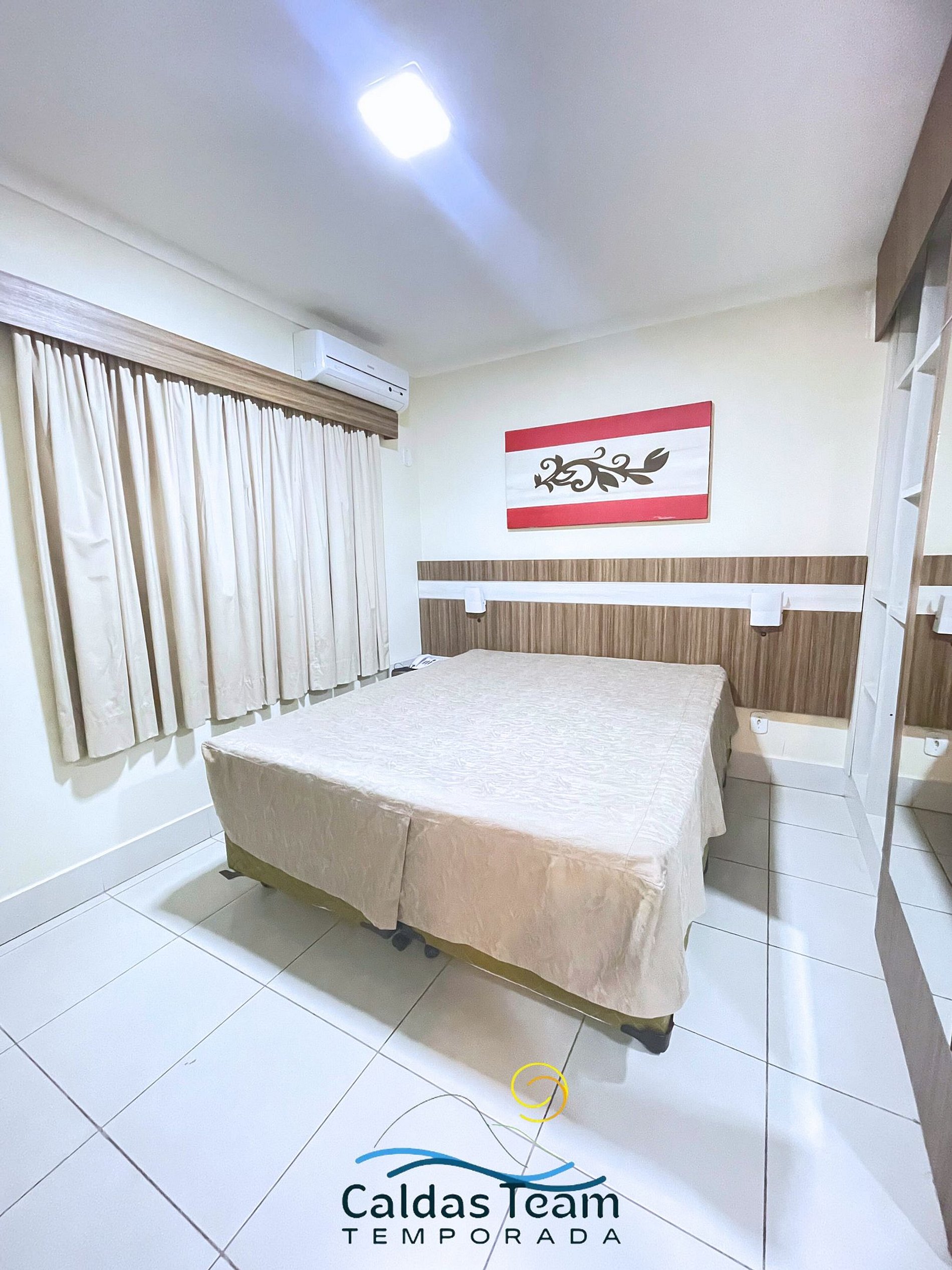 Apartamento aconchegante de 1 quarto contendo, suíte de casal com ar condicionado, TV e guarda roupa, 1 colchão extra de solteiro.