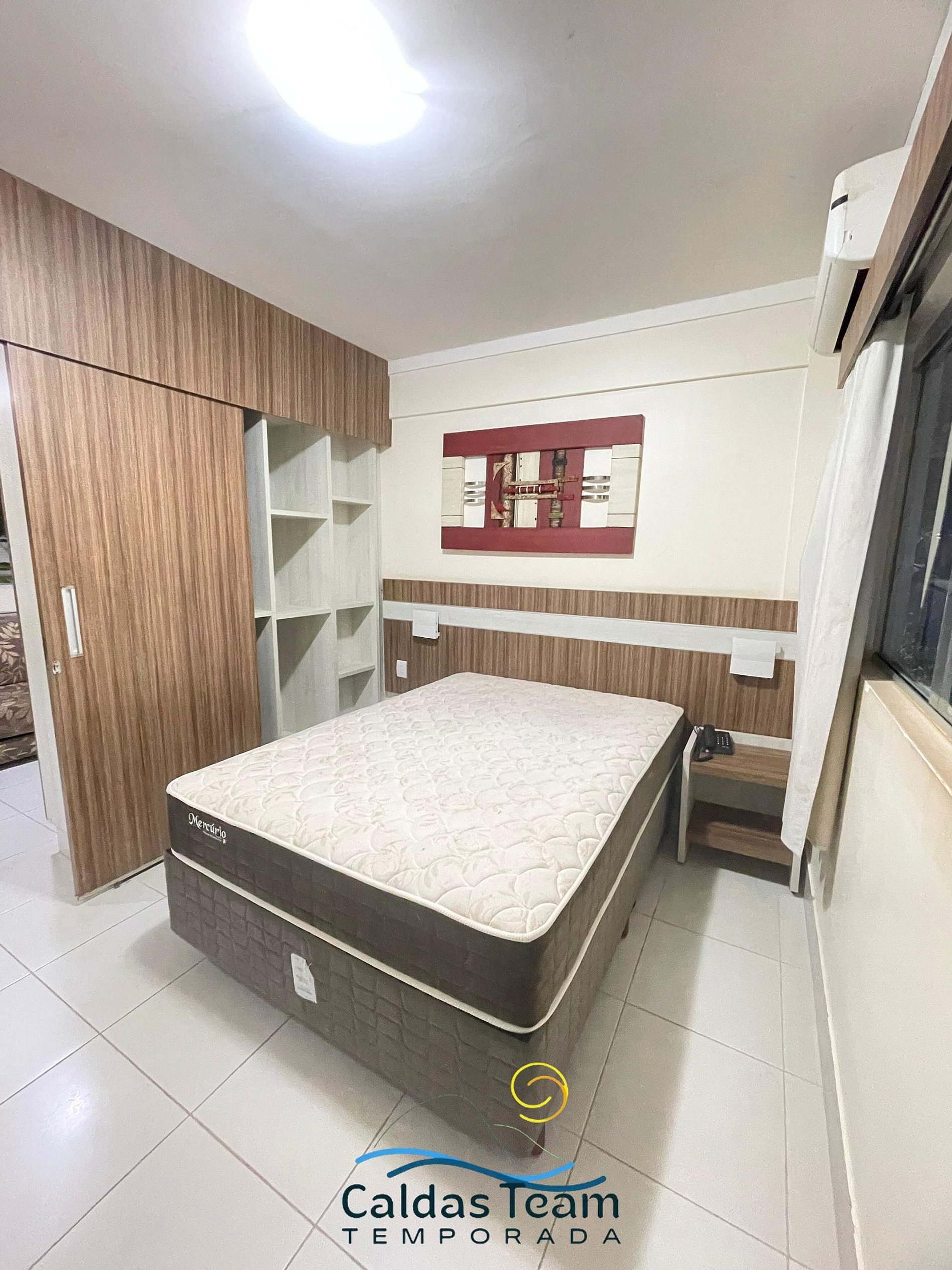 Apartamento aconchegante de 1 quarto contendo, suíte de casal com ar condicionado, TV e guarda roupa, 1 colchão extra de solteiro.