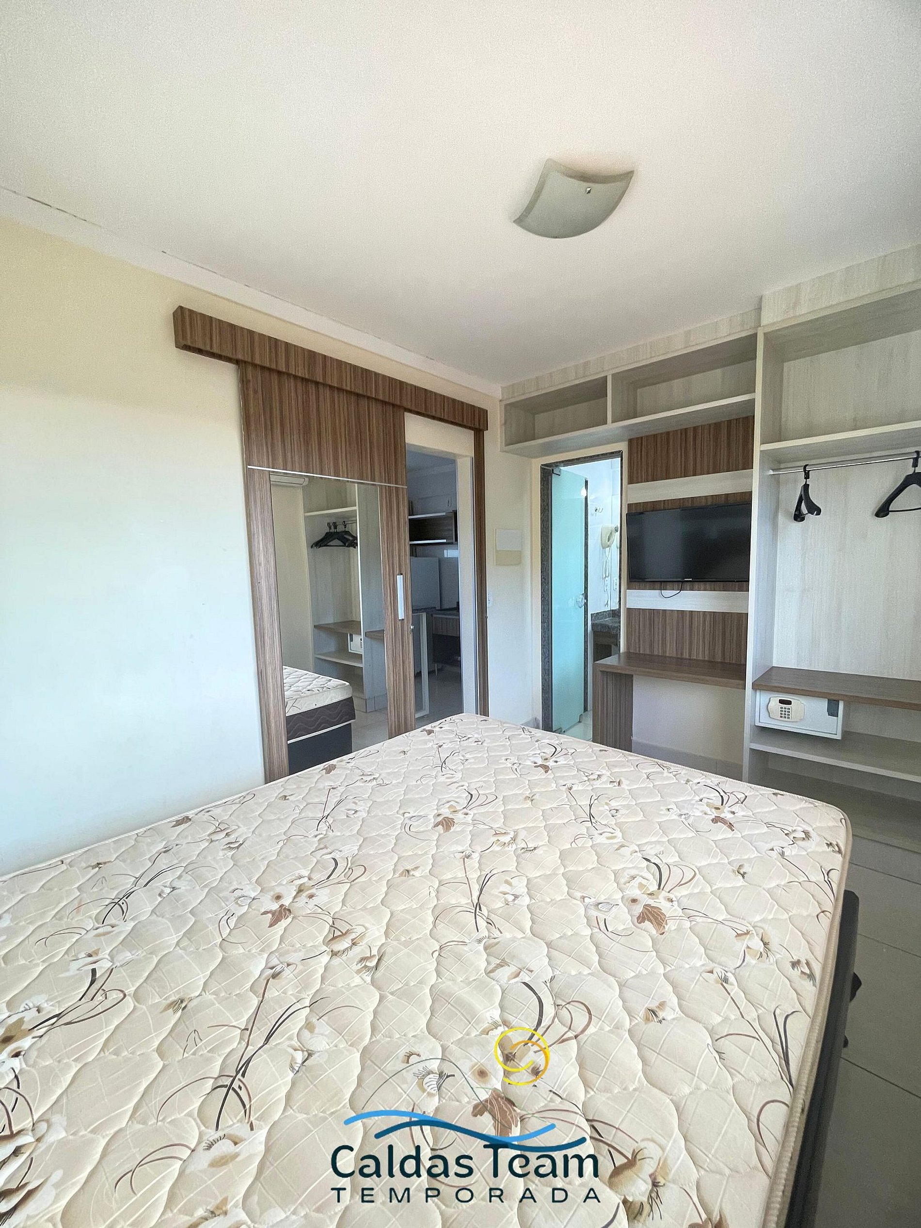 Apartamento aconchegante de 1 quarto contendo, suíte de casal com ar condicionado, TV e guarda roupa, 1 colchão extra de solteiro.